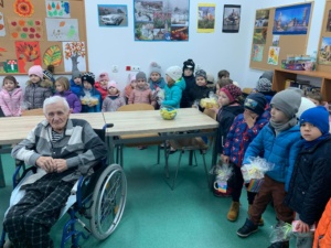 👉 Dzieci z Przedszkola Miejskiego nr 3 w Pułtusku odwiedziły w Dzień Seniora pacjentów Szpitala Powiatowego Gajda – Med w Pułtusku Oddział Zakładu Opiekuńczo-Leczniczego.