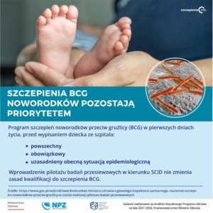 Szczepionka BCG chroni głównie niemowlęta przed najcięższymi postaciami gruźlicy – m.in. gruźliczym zapaleniem opon mózgowo-rdzeniowych i rozsianą postacią choroby – gruźlicą prosówkową. Na tę postać chorują przede wszystkim niemowlęta, dlatego tak ważne jest szczepienie najmłodszych.