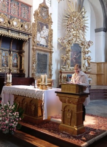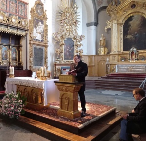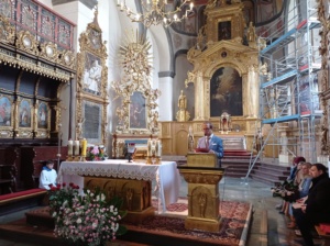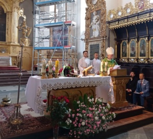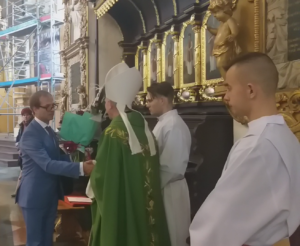 👉 Ksiądz infułat Wiesław Kosek podziękował za cudowną oprawę Eucharystii oraz pogratulował prof. Robertowi Gajdzie Srebrnego Krzyża Zasługi.